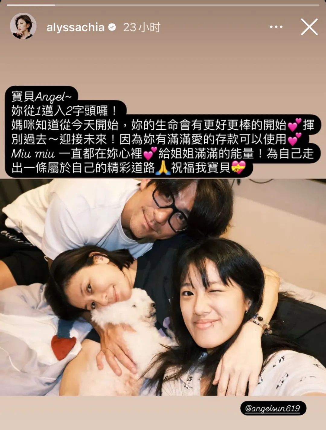 贾静雯在社交平台发文:“宝贝Angel,你从1迈入2字头咯!妈咪知道从今天开始,你的生命会有更好更棒的开始!挥别过去~迎接未来,因为你有满满爱的存款可以使用!Miu miu 一直都在你心里,给姐姐满满的能量!为自己走出一条属于自己的精彩道路。祝福我宝贝!”